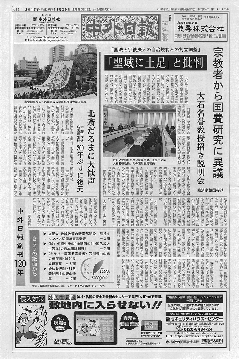 1月24日京都新聞朝刊の連載記事『神仏のゆくえ』にて 泰聖寺が取材対応しました。