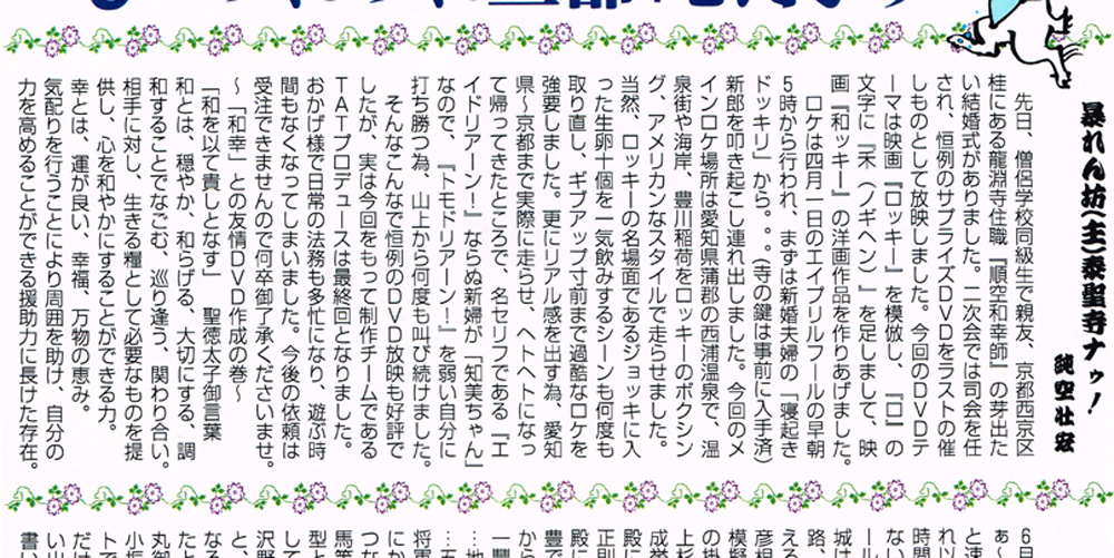 2/5(月)産経新聞夕刊の『天王寺七坂・七名水巡り』特集で「泰聖寺」が紹介されました。